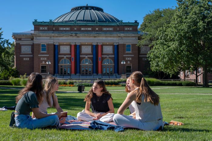 A Catholic Illini small group meets on the main quad